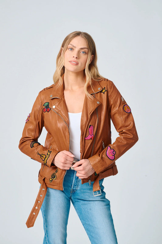 The Nicole Western Patch Leather Coat