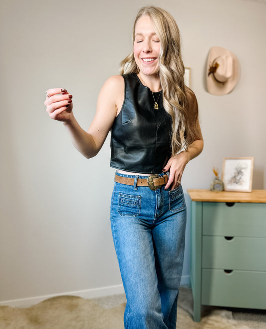 New Era Faux Leather Top - Small