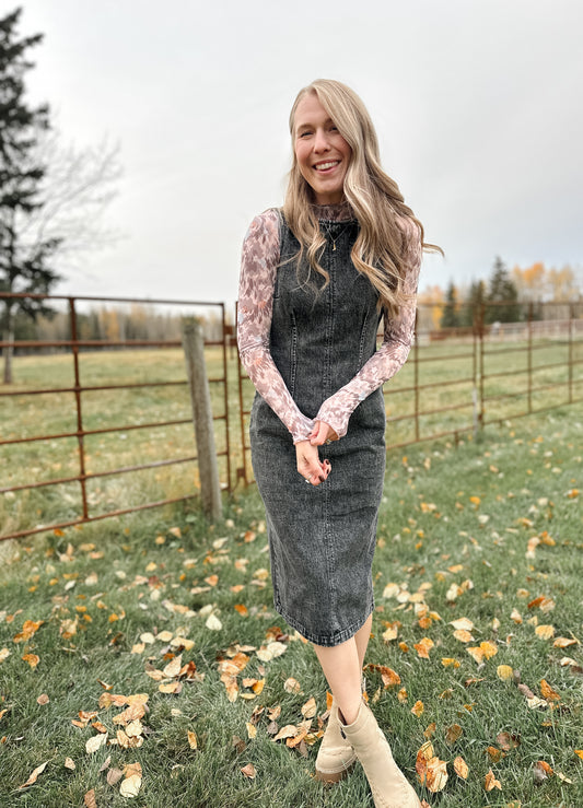 Transformative Fitted Denim Midi Dress - XS