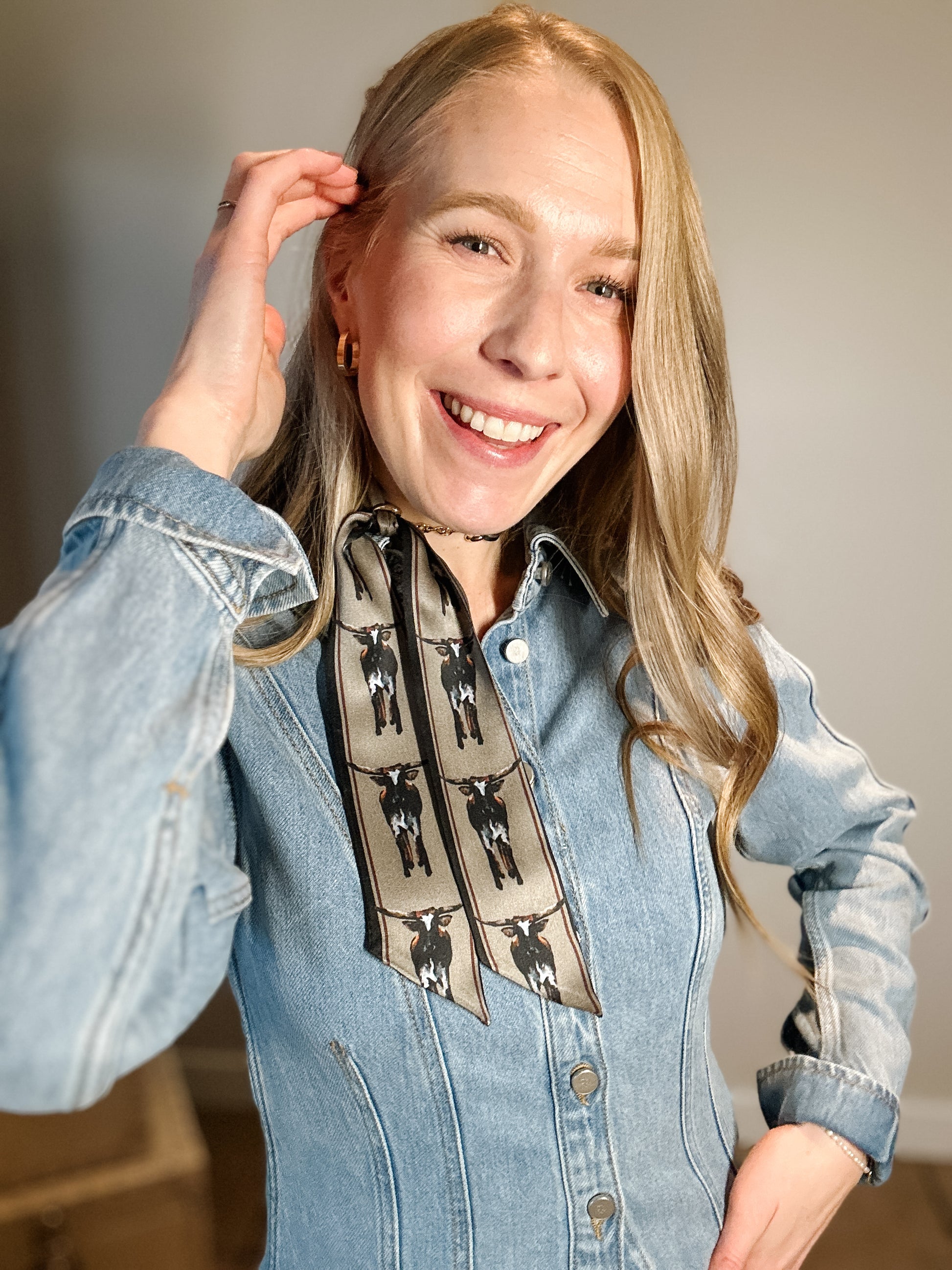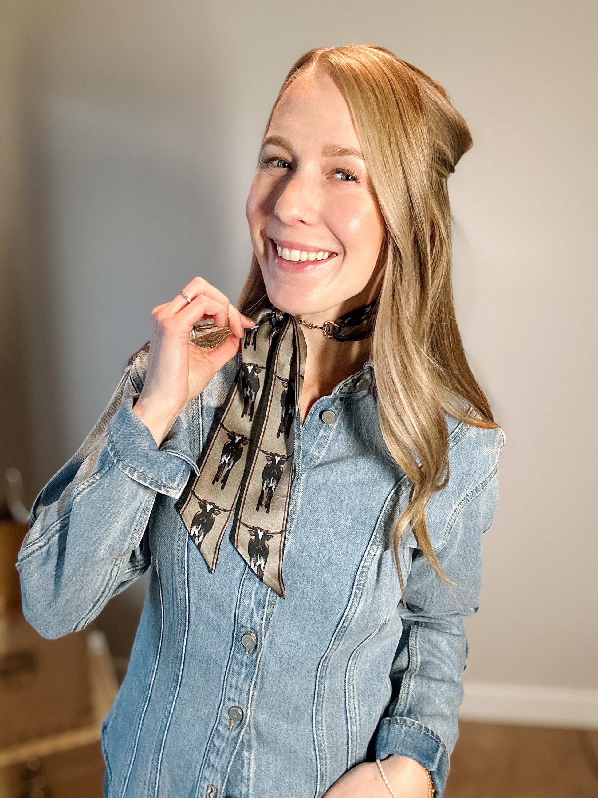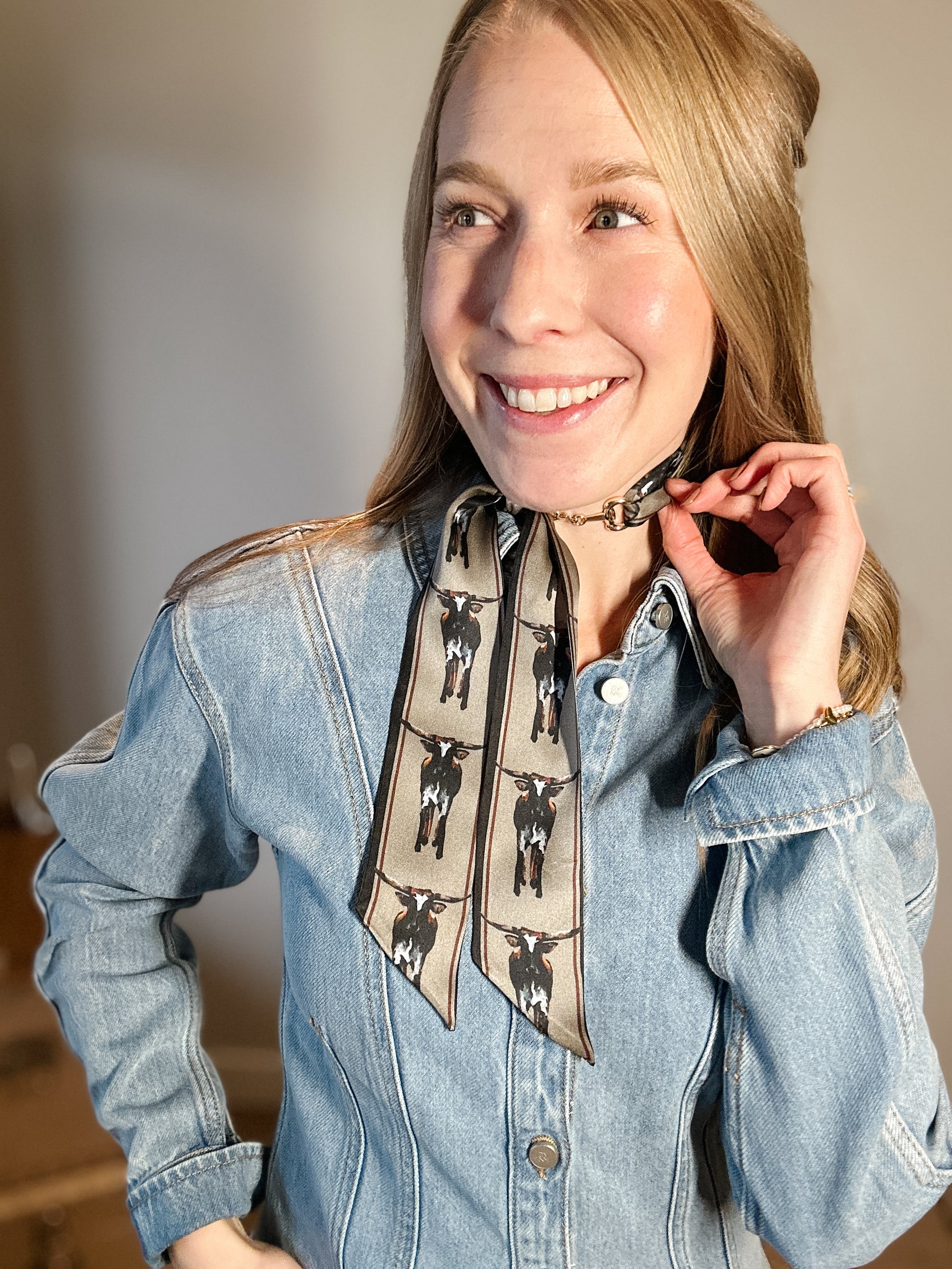 The Silk Twilly is simple and easy to incorporate into any outfit. Add it to your neckline or wrap it around your wrist several times along with some silver cuff bracelets. And don't forget adding a Twilly to your favorite purse handle. It is a great way to add color for a more minimalist look!