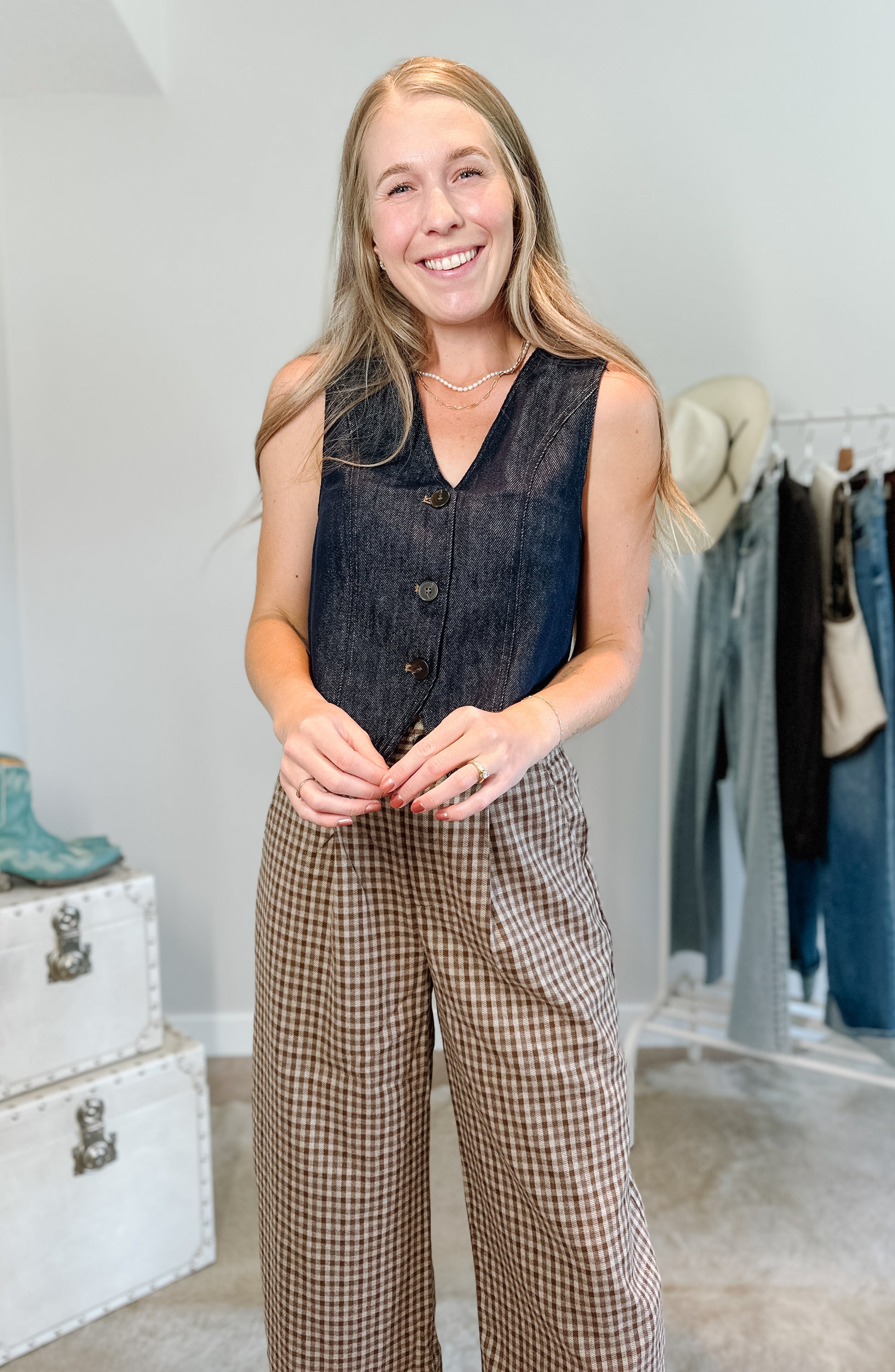 Pair it with wide-leg denim for a chic set moment or throw it on over a dress for an effortlessly cool western touch. The Indigo Denim Vest is that wardrobe essential you’ll reach for season after season.