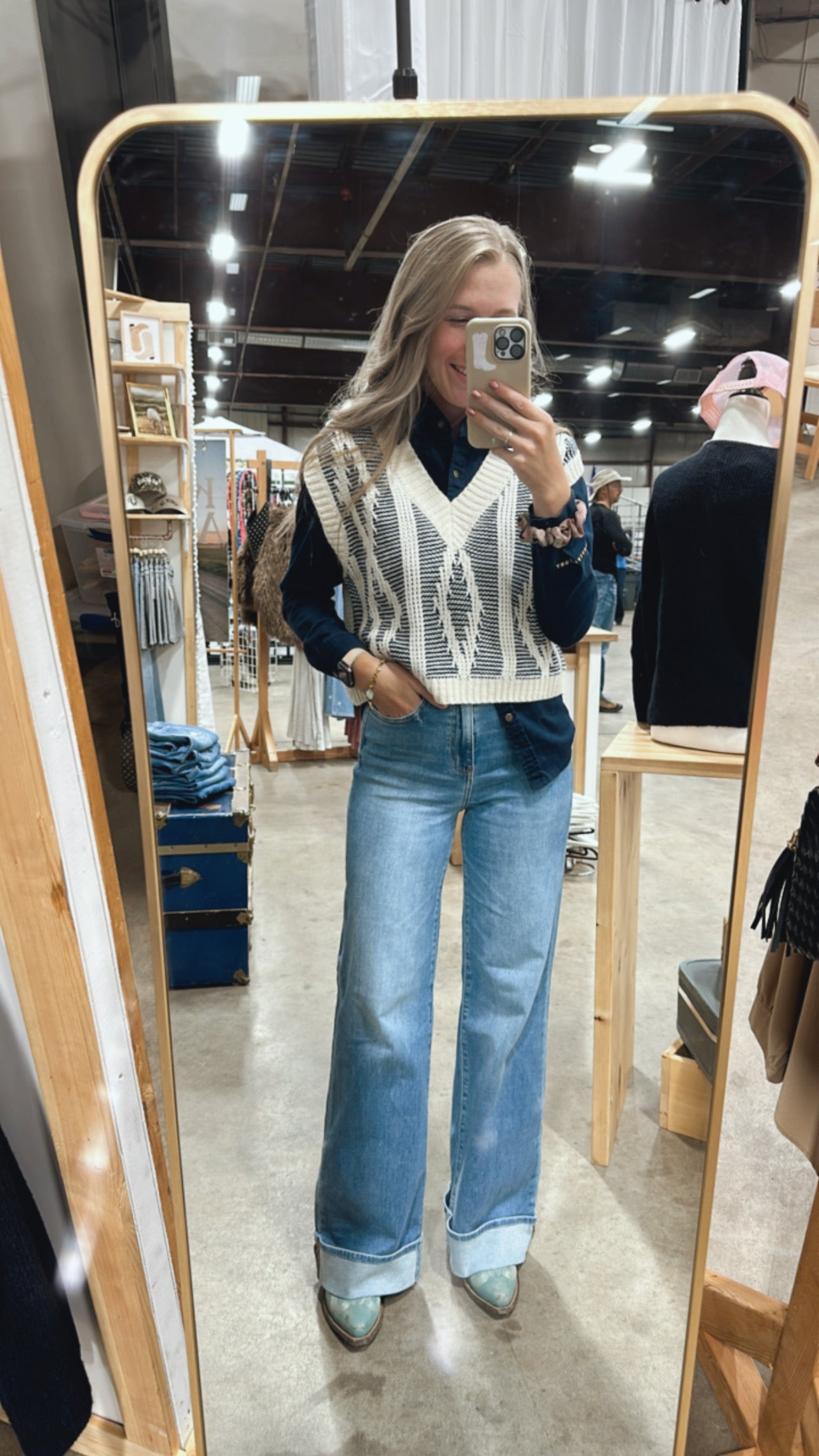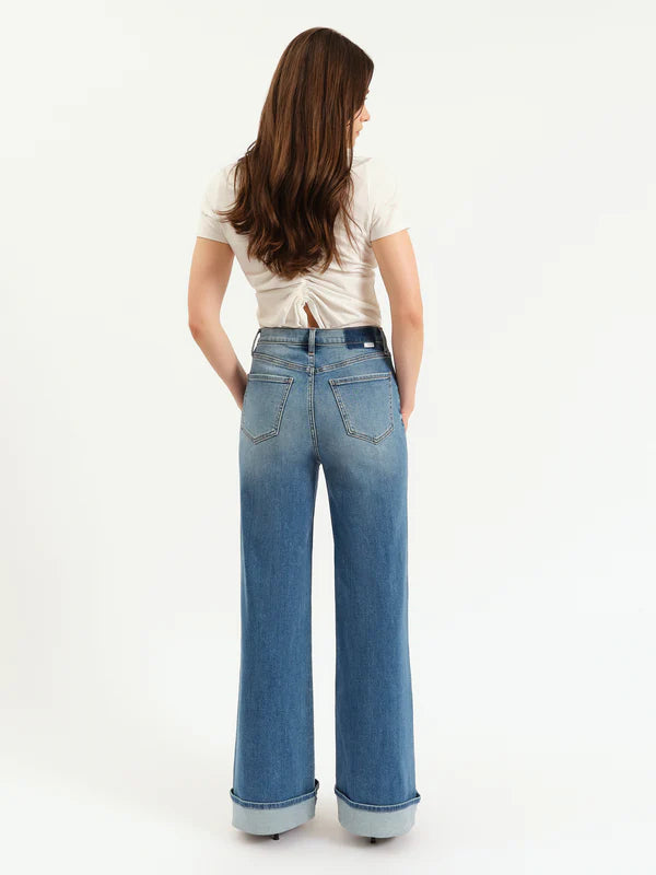 Meet your new go-to denim: the Big Break jeans by DAZE. With a flattering high rise and wide leg fit, these jeans give off serious vintage energy with just the right amount of modern stretch. The washed medium-blue tone, subtle fading, and just right cuffed look, giving that perfectly worn-in feel — like you’ve loved them for years. Pair them with a cropped tee, a chunky knit, or your favorite boots for a laid-back look that still makes a statement.