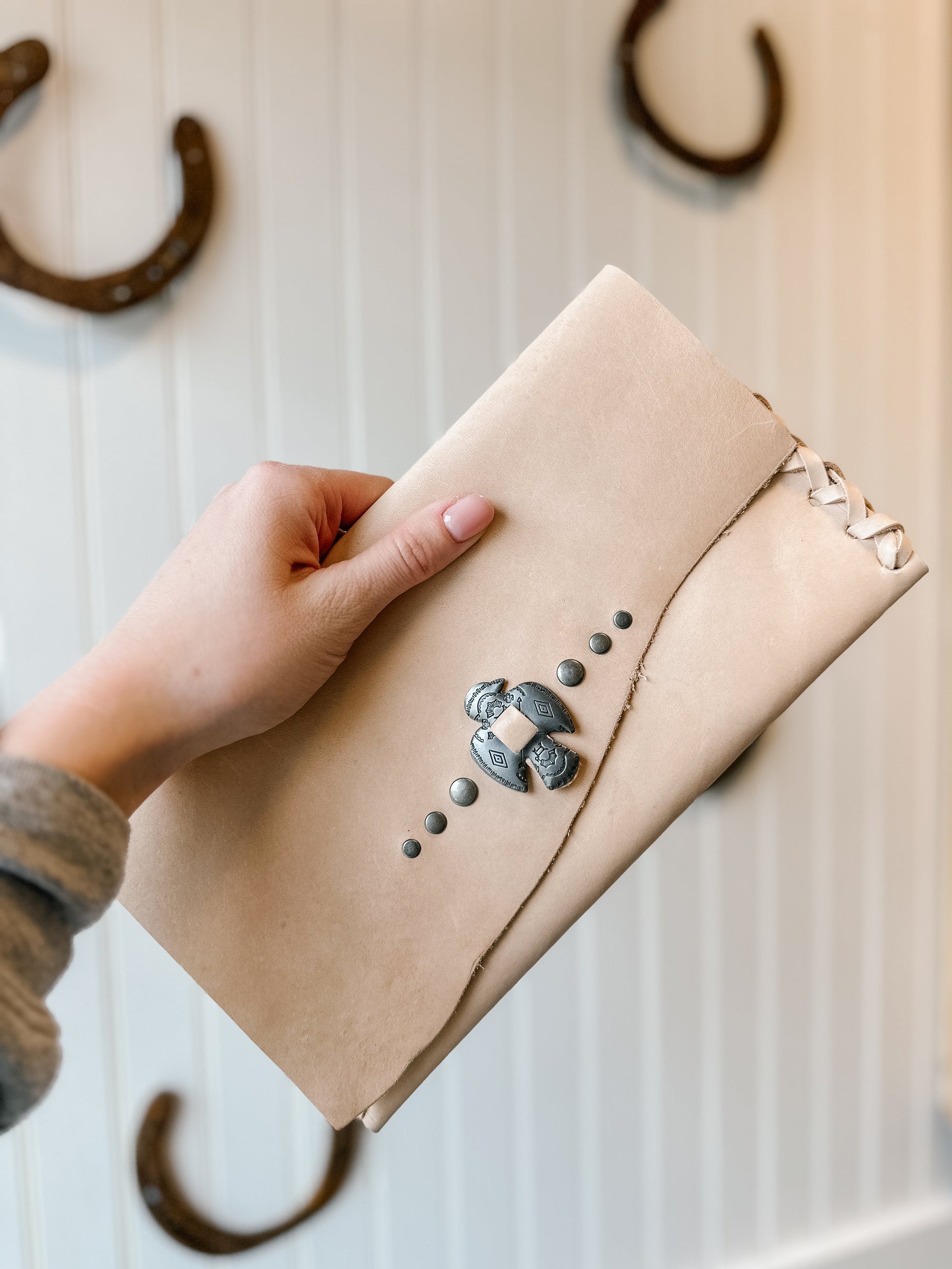 The Isaiah clutch is handmade, with so much love, right here in central Albert. These beautiful clutches will wear beautifully with use, leaving marks and rubs that will add so much character to the clutch.