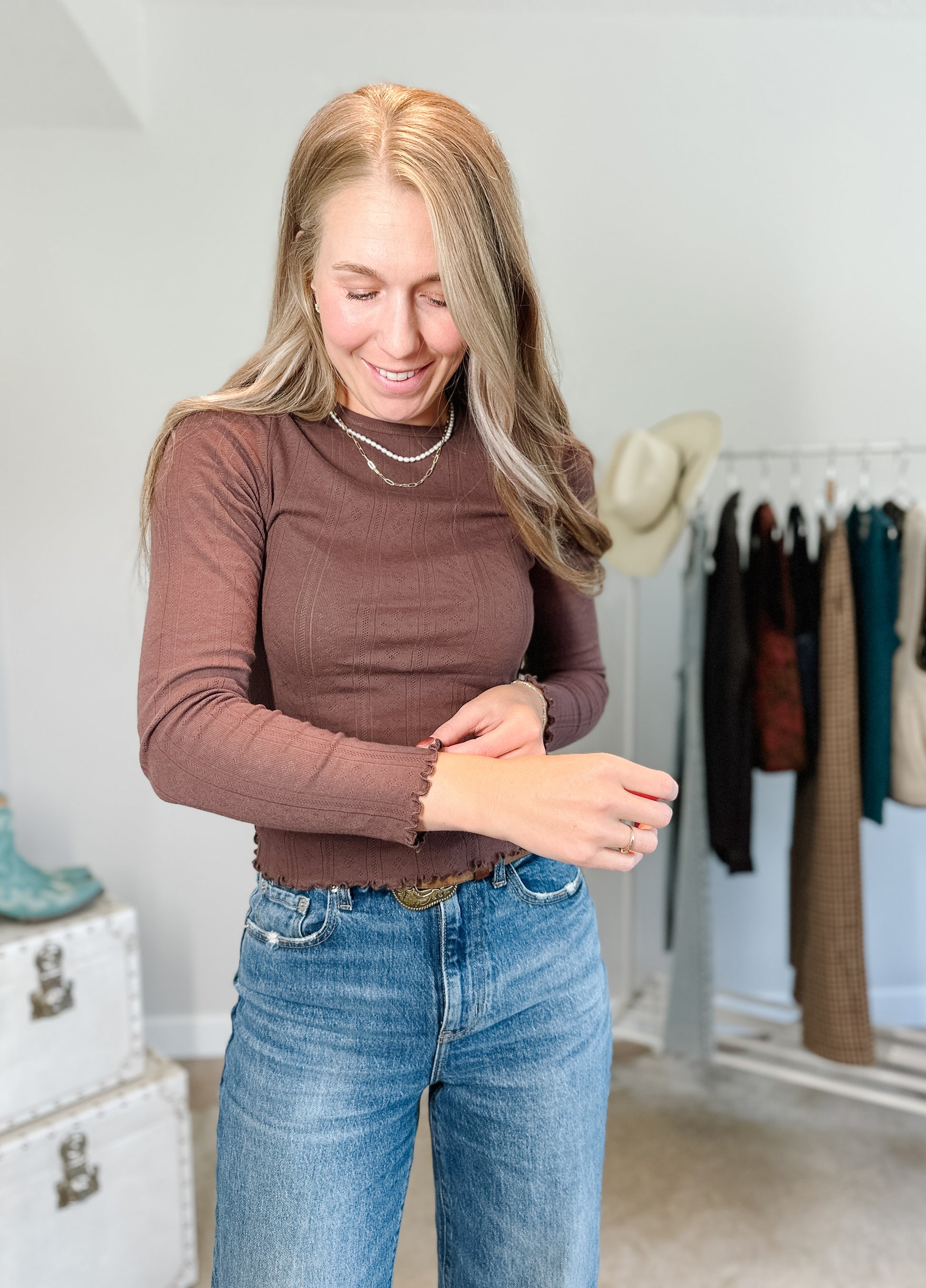 The perfect little layering piece you’ll keep reaching for. The Waverly is a trendy pointelle-style tee with delicate texture and just the right amount of stretch. Its fitted cut and subtle lettuce-edge trim make it cute worn on its own, but it also layers effortlessly under blazers, vests, or cozy knits. A timeless staple with a modern twist.